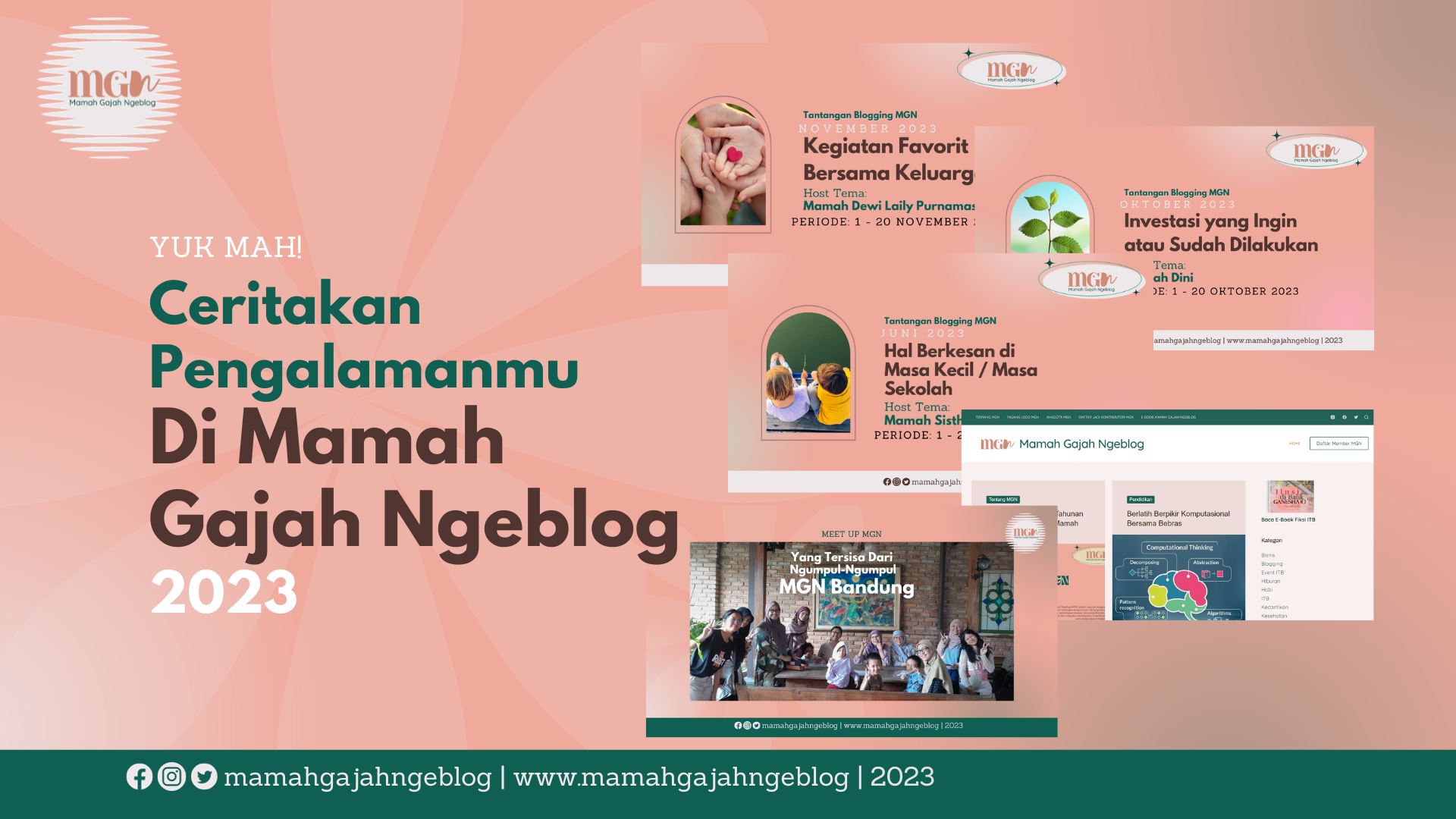 Tahun 2023 adalah tahun ketiga Mamah Gajah Ngeblog beraktivitas. Alhamdulillah, seiring berjalannya waktu komunitas ini sudah berkembang menjadi wadah yang hangat bagi Mamah-Mamah untuk aktif ngeblog.