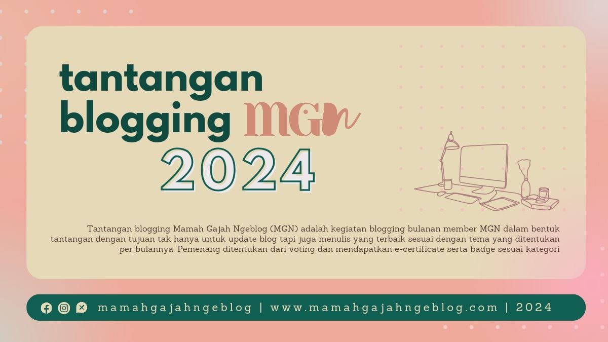 Apa lagi kalau bukan kegiatan bulanan MGN yang banyak membawa kebaikan dalam kehidupan per-blogging-an Mamah yaitu Tantangan Blogging Mamah Gajah Ngeblog tahun 2024!