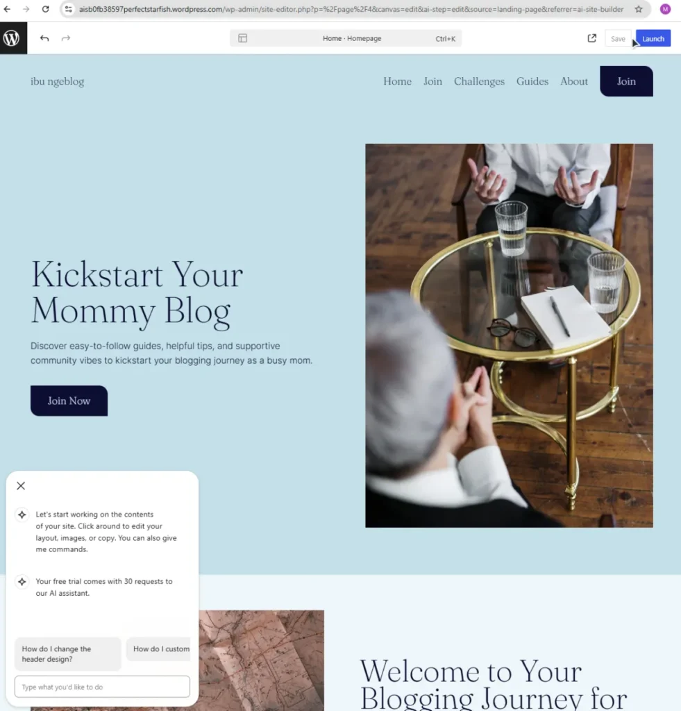 Bagi mamah yang nggak paham mengenai desain web, bisa minta masukan ke AI untuk gambaran tampilan blog kita. Misalnya kita menulis blog parenting dan akan menulis topik tertentu, kita bisa menulis prompt/perintah menanyakan palet warna atau font yang cocok.