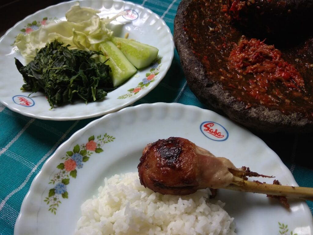 Ayam bakar, lalapan, dan sambal terasi