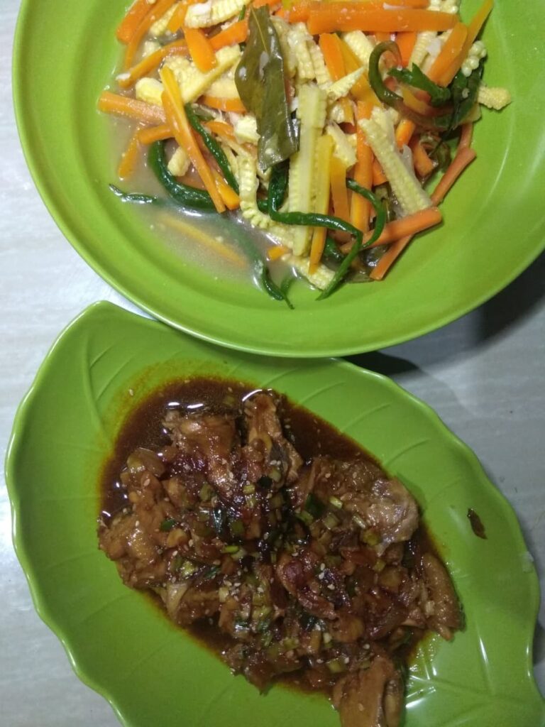 Tumis wortel jagung muda cabai hijau dan ayam kecap