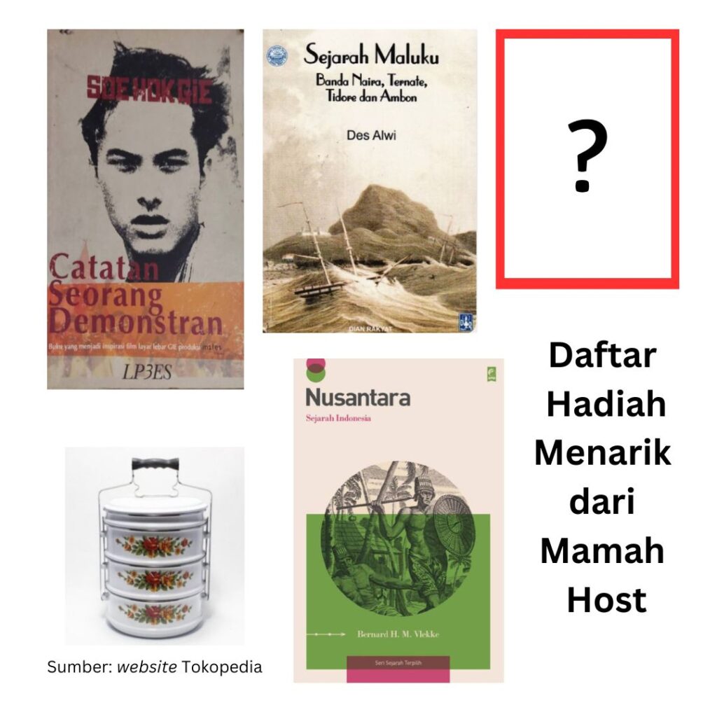 - “Sejarah Maluku” oleh Des Alwi. Salah satu buku sejarah favorit Mamah Host. Buku ini mengupas tuntas kronik dan sejarah peristiwa di kepulauan rempah-rempah. Gaya bertutur Des Alwi yang kadang lebih mirip cerita novel membuat buku ini menyenangkan untuk dibaca. Walaupun agak sulit jika pembaca ingin mengurutkan kronik peristiwa dan nama.