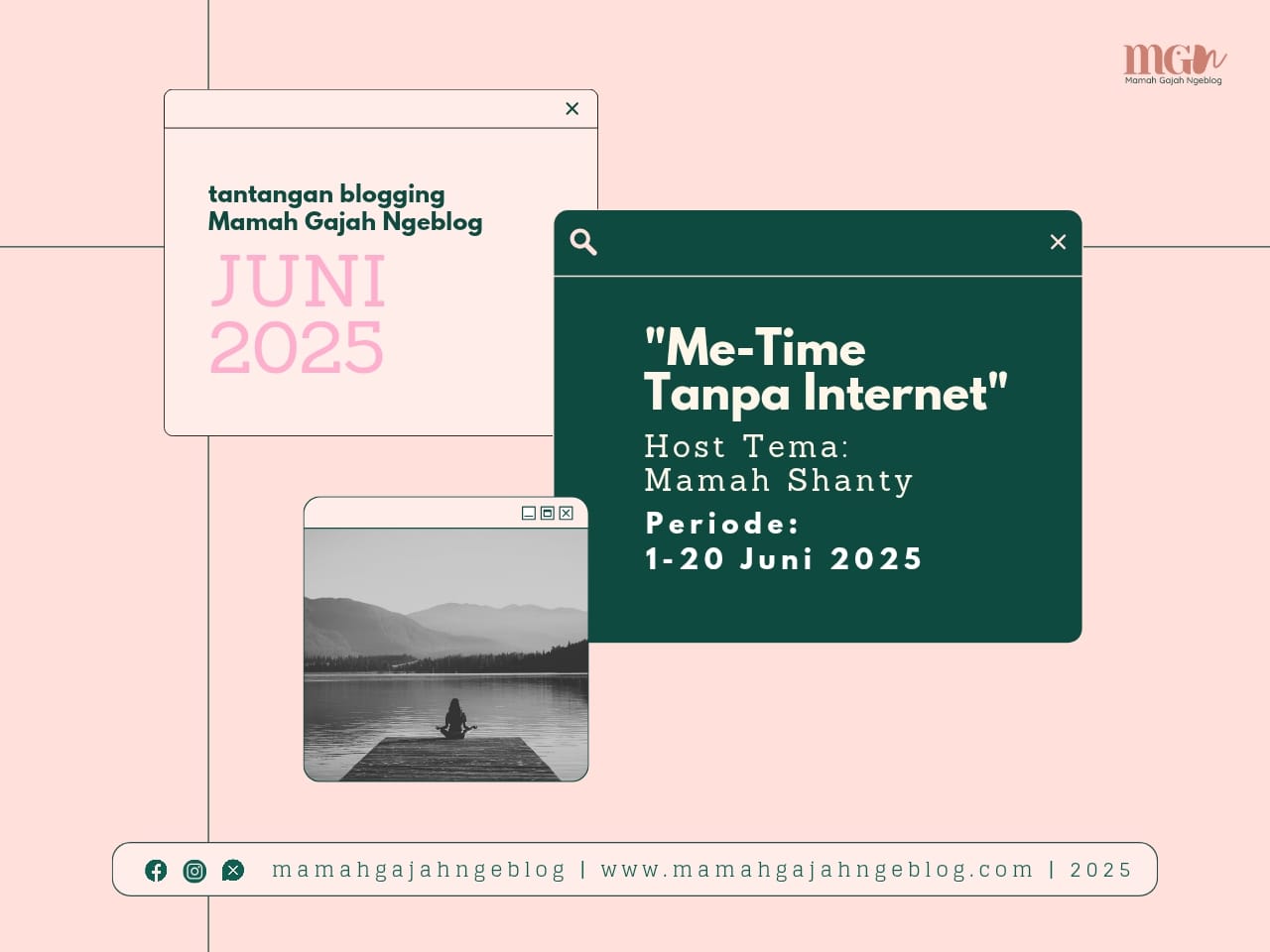Nah di bulan Juni ini, kami ingin membaca cerita para Mamah mengenai pengalamannya mengisi waktu tanpa internet dan terhubung dengan dunia maya. Host bulan ini Mamah Shanty Dewi Arifin yang biasa menulis di ceritashanty.com mengusulkan tema ini karena penasaran. Apakah ada kegiatan menarik tanpa internet yang biasa para Mamah lakukan dalam kesendirian? Atau mungkin lebih suka jika dilakukan bersama dengan keluarga atau teman?