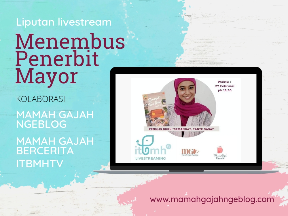 Liputan Livestream ITBMHTV x MaGaTa x MGN “Menembus Penerbit Mayor” : Thessalivia, salah satu mamah gajah yang bukunya diterbitkan oleh Gramedia berbagi tips untuk mamah gajah lainnya tentang apa yang dia lakukan untuk menembus penerbit mayor. Baca liputannya disini.
